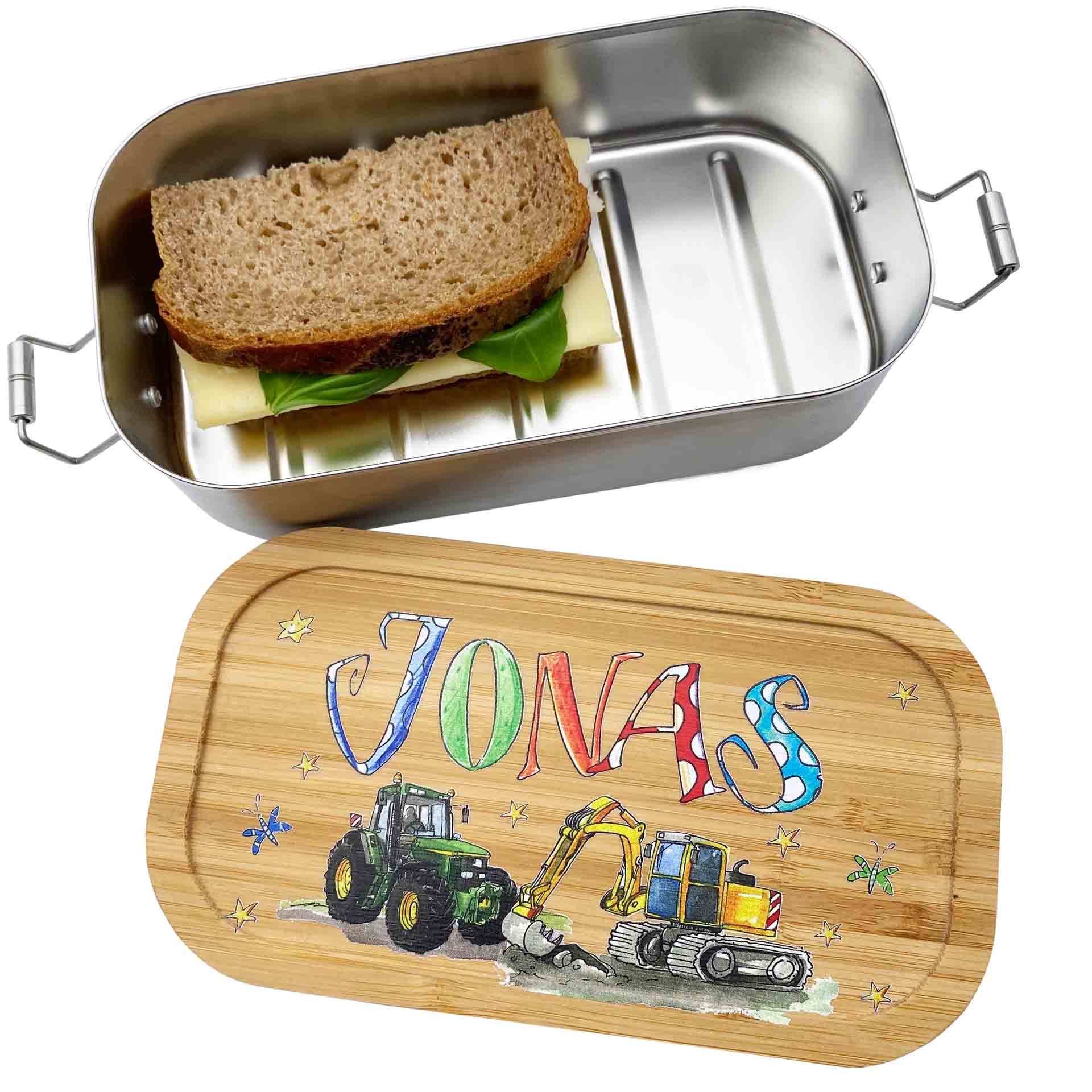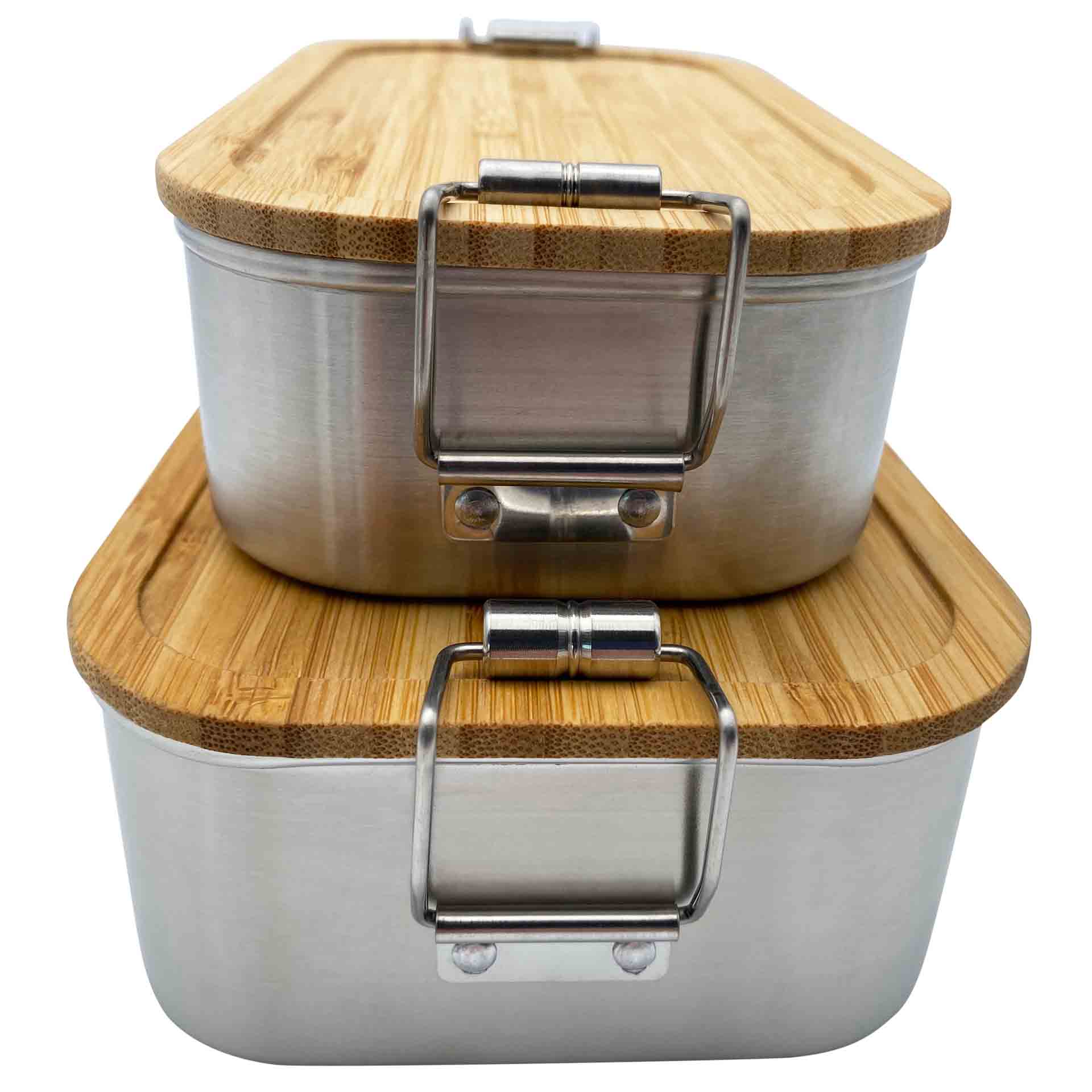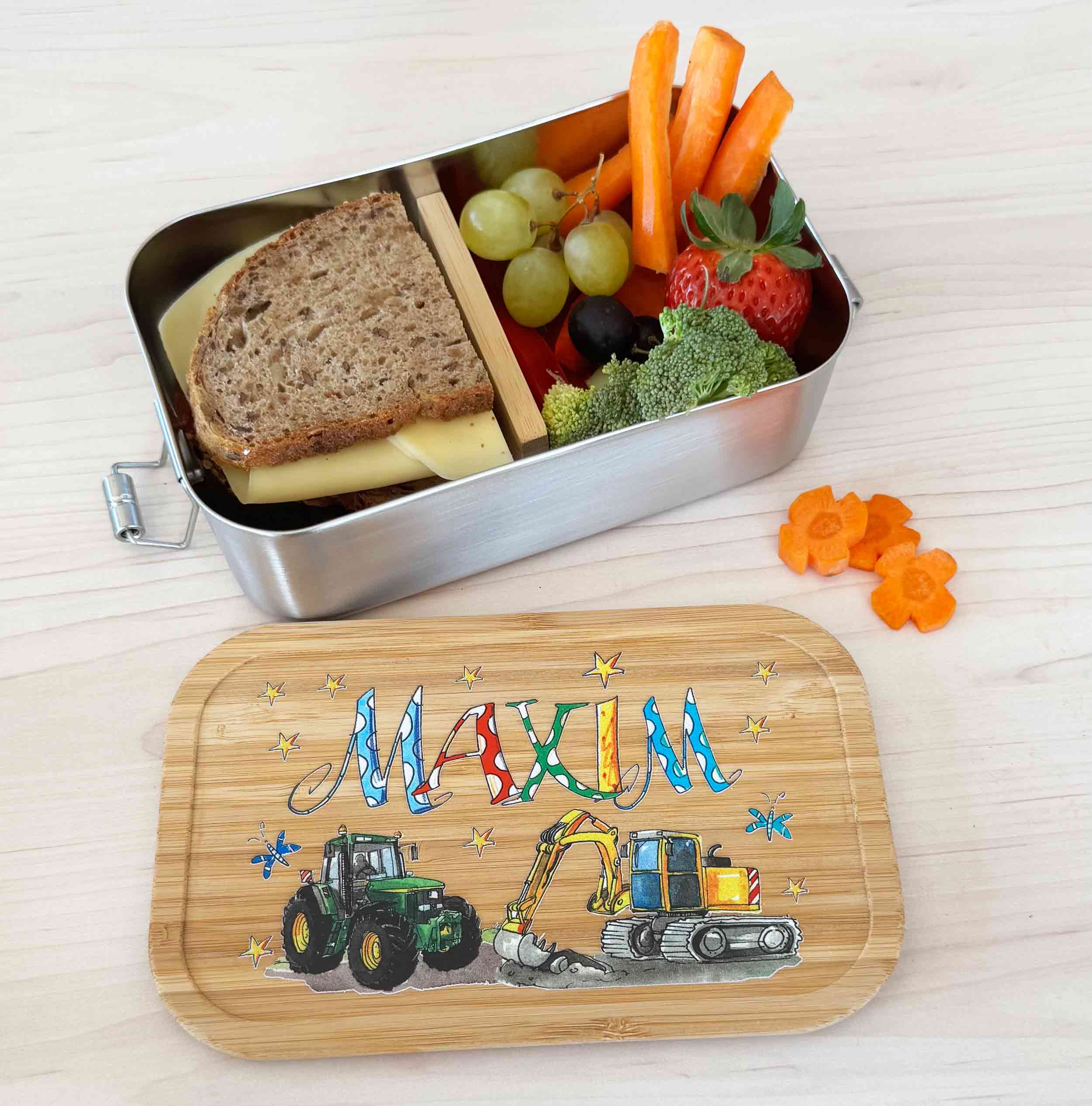 Personalisierte Edelstahl Brotdose mit Bambusdeckel und Trennwand