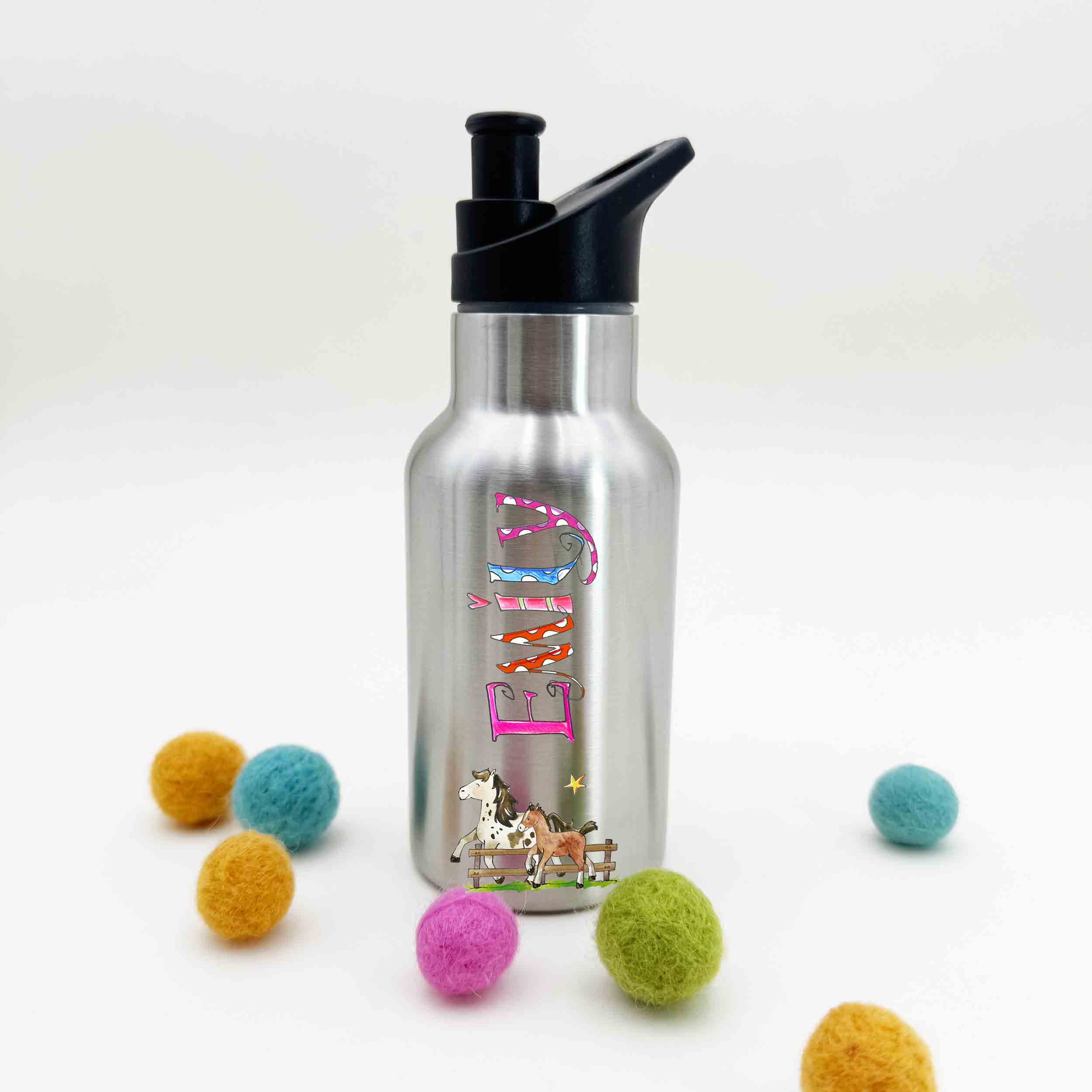 Die Trinkflasche wird so wie auf dem Foto mit den gewünschten Namen geliefert. Falls man ein anderes Motiv aus dem Shop haben möchte, geht das natürlich auch. Bitte dann mit in das Feld für den Namen schreiben.