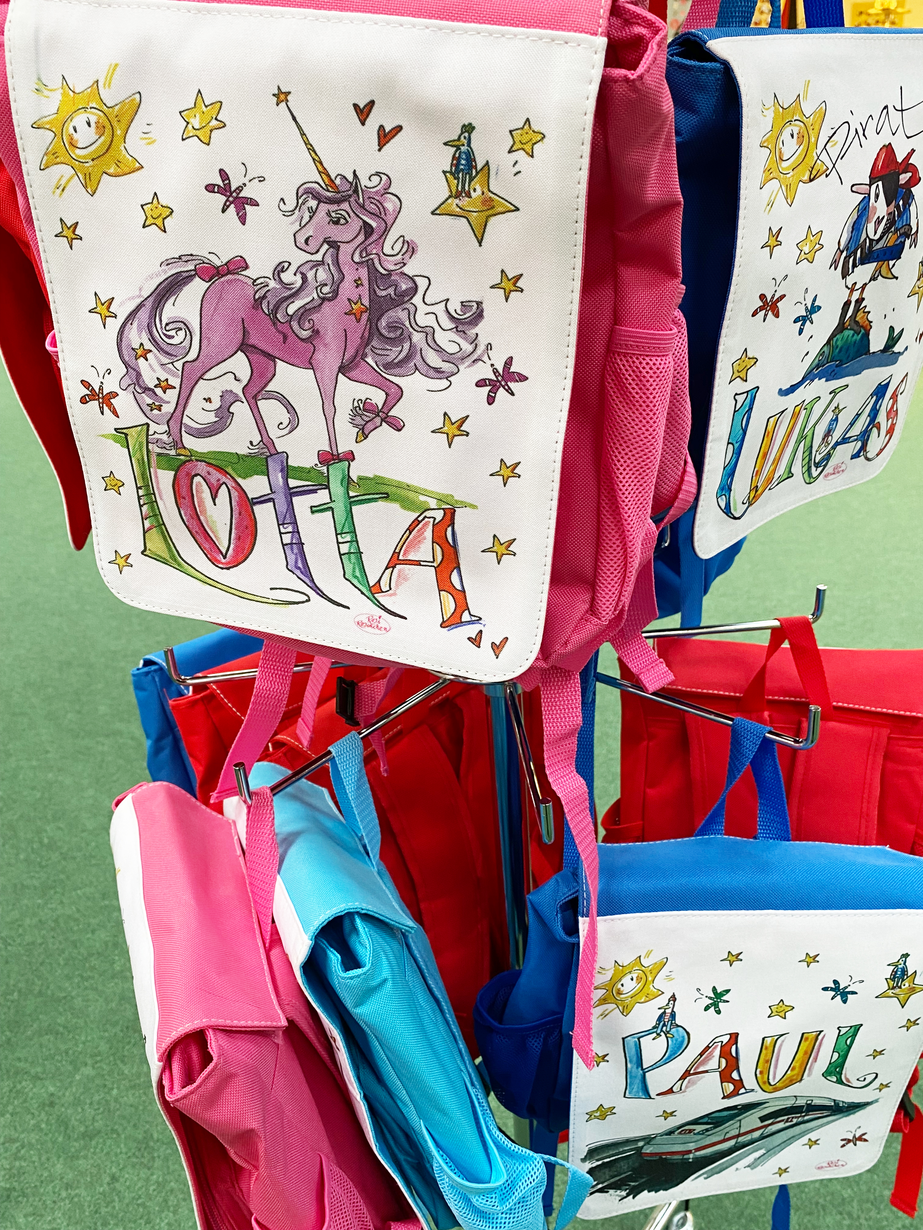 Die Kindergarten Rucksäcke können auf verschiedenen Möglichkeiten personalisiert werden: Lieferung wie abgebildet mit dem gewünschten Namen. Falls man ein anderes Motiv aus dem Shop haben möchte, geht das natürlich auch. Bitte dann mit in das Feld für den Namen schreiben. Der Name kann auch zB. auch ein Doppelname oder ein Kosename sein. Bitte solche Wünsche einfach mit angeben.