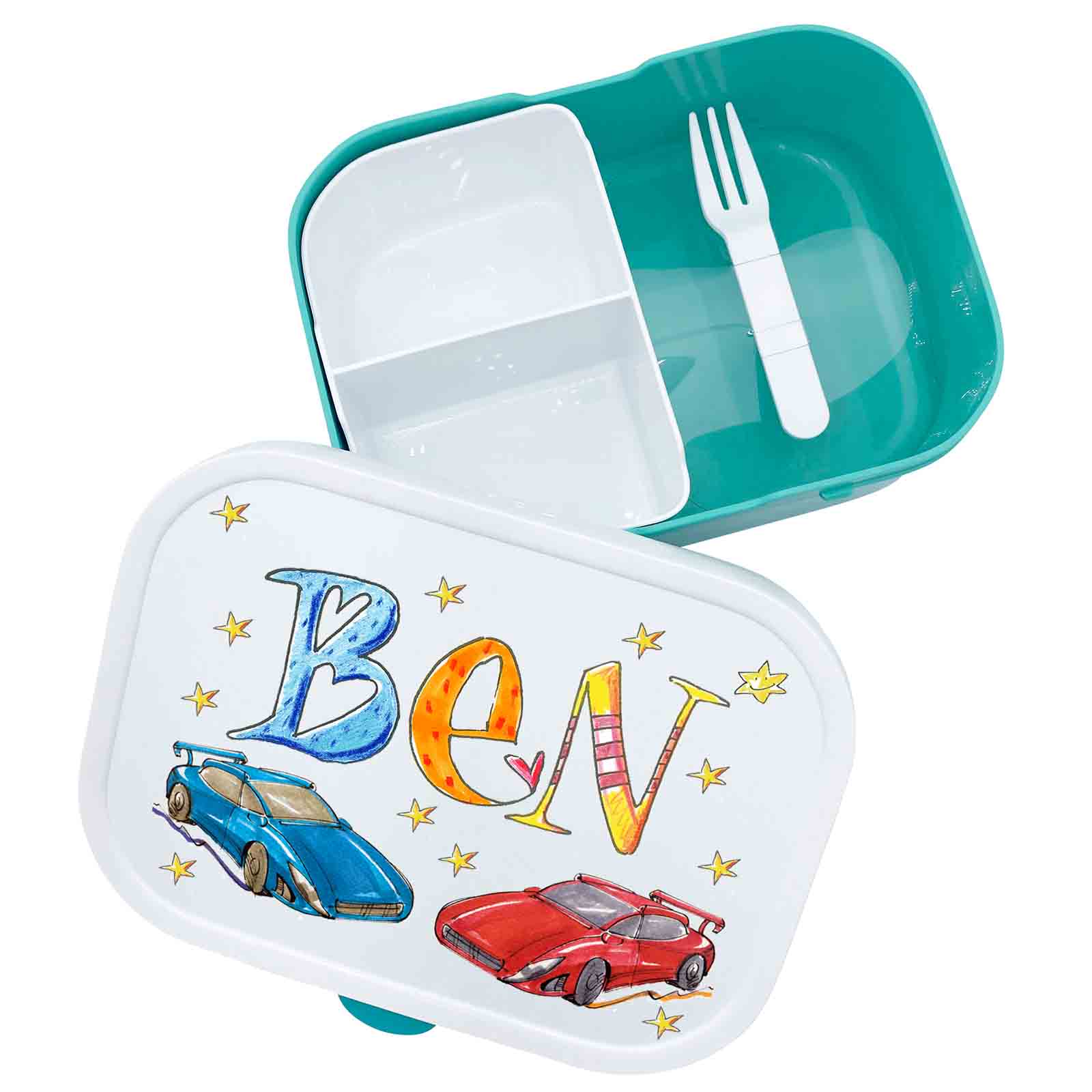 Inklusive herausnehmbarer 2-geteilter Bentobox und Snack-Gabel