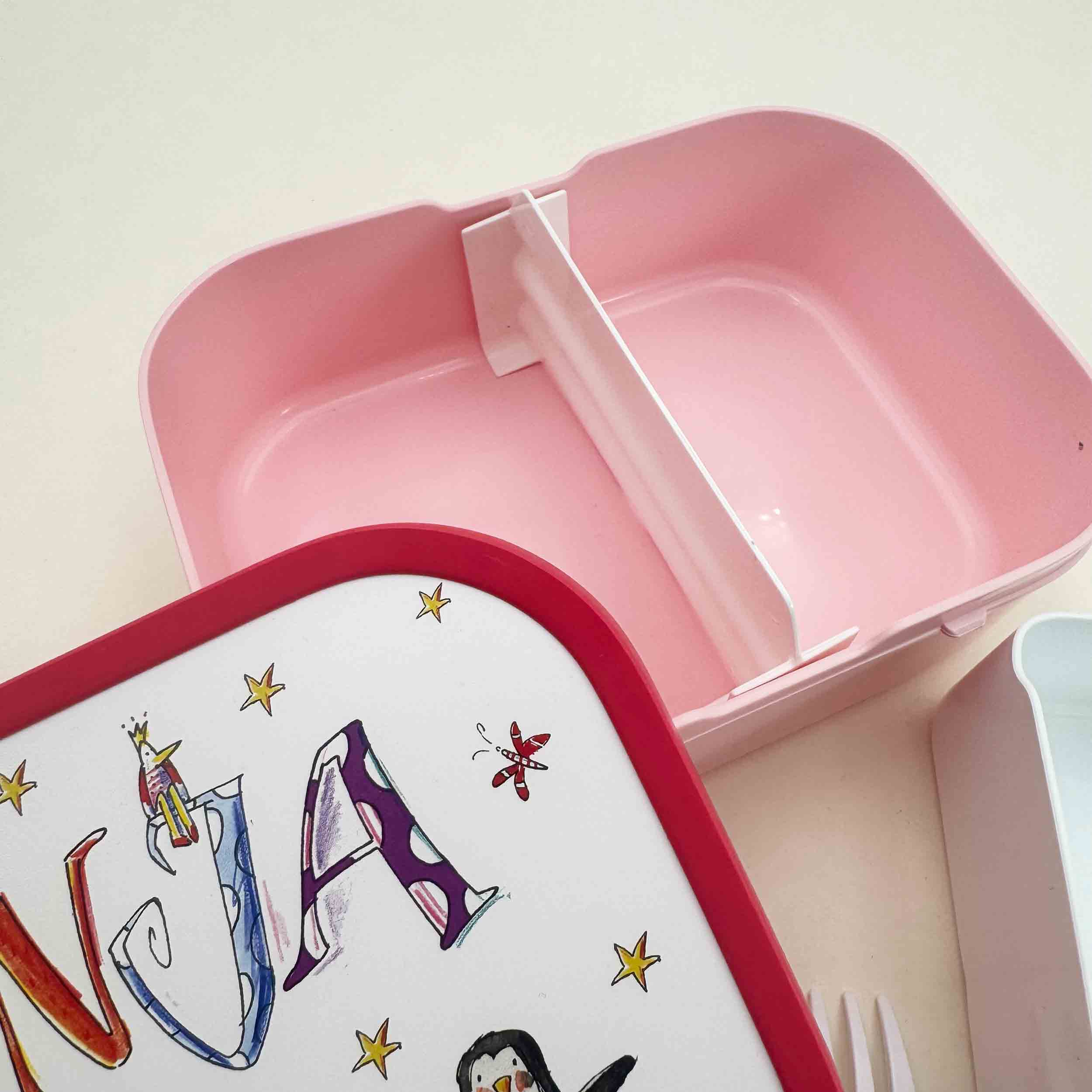 Inklusive herausnehmbarer 2-geteilter Bentobox und Snack-Gabel