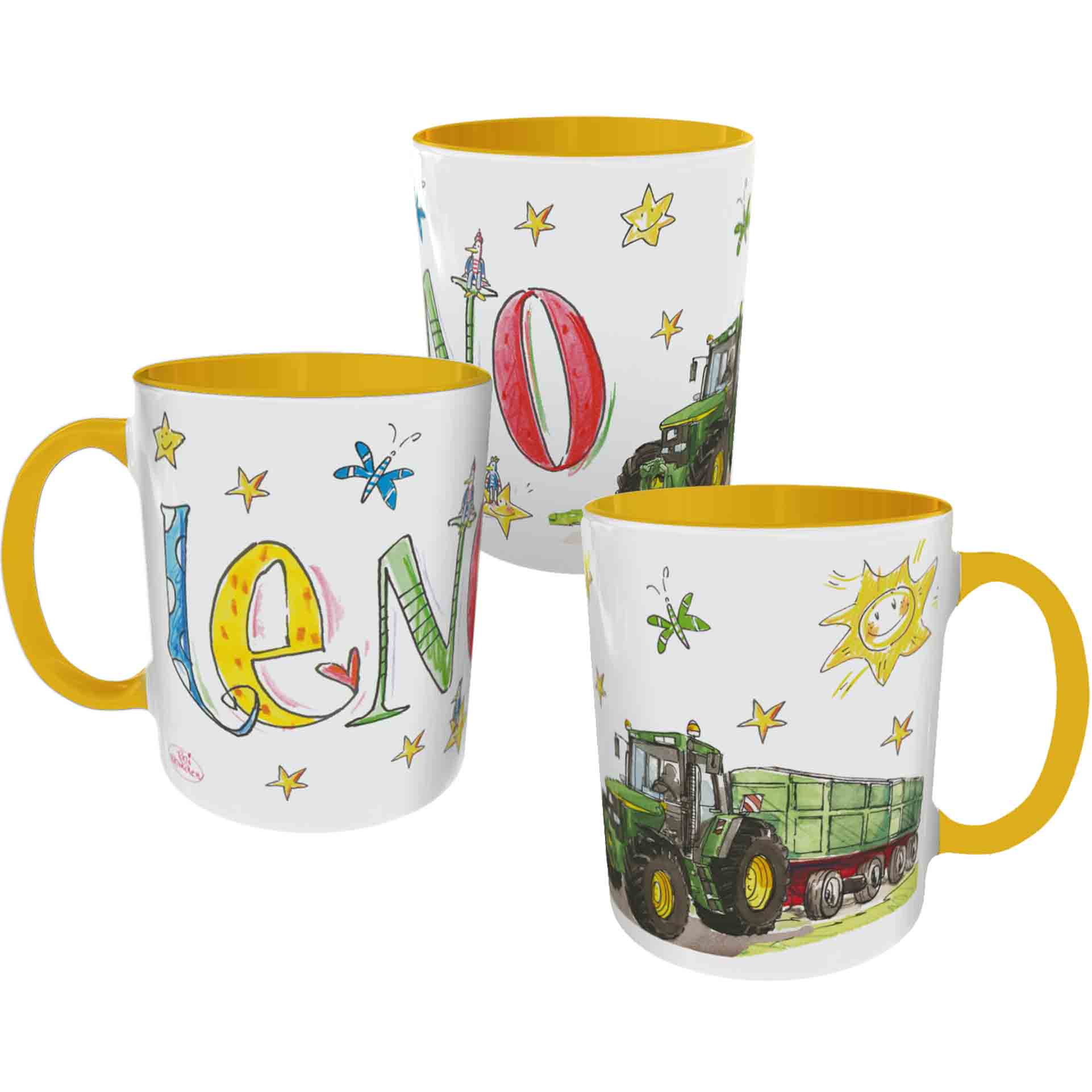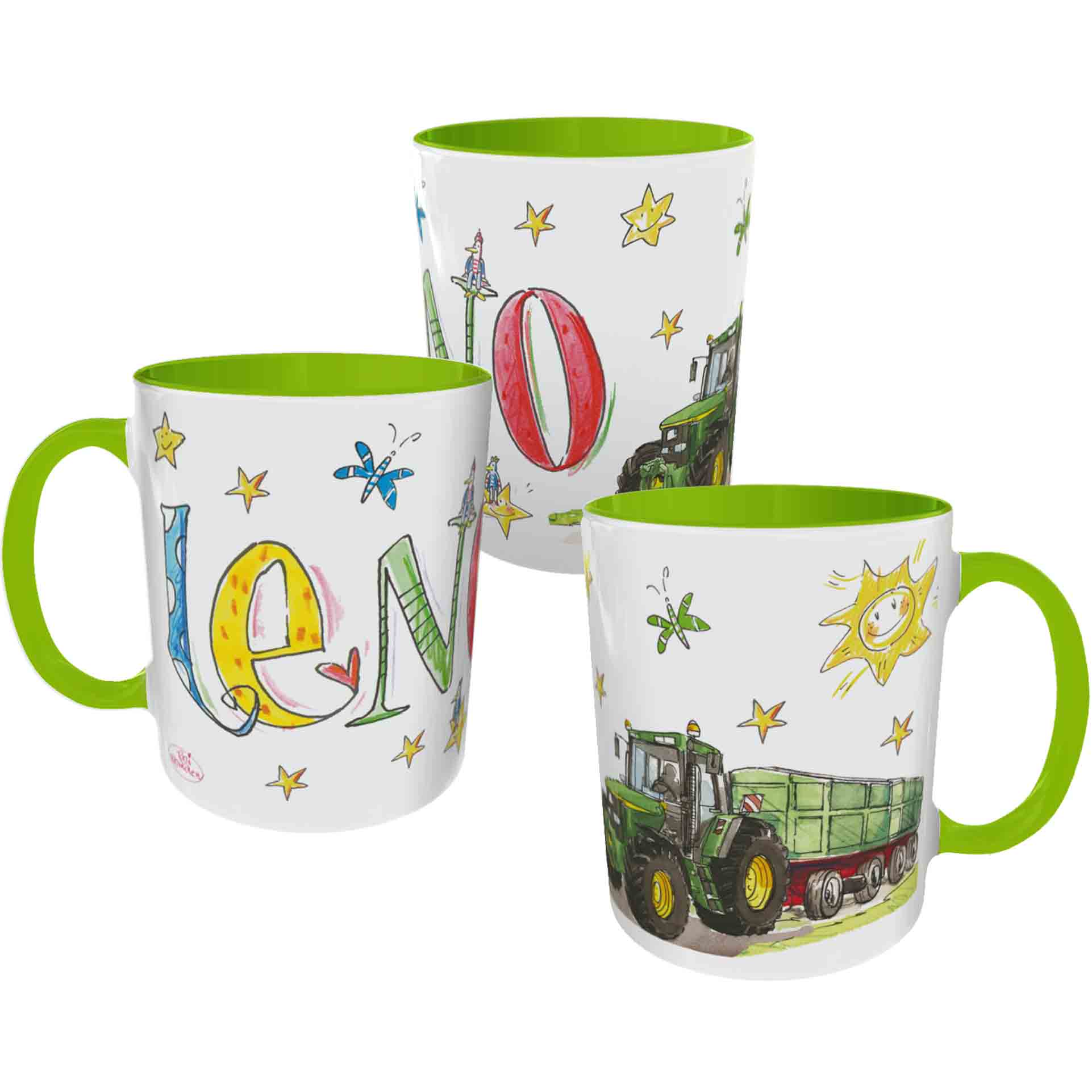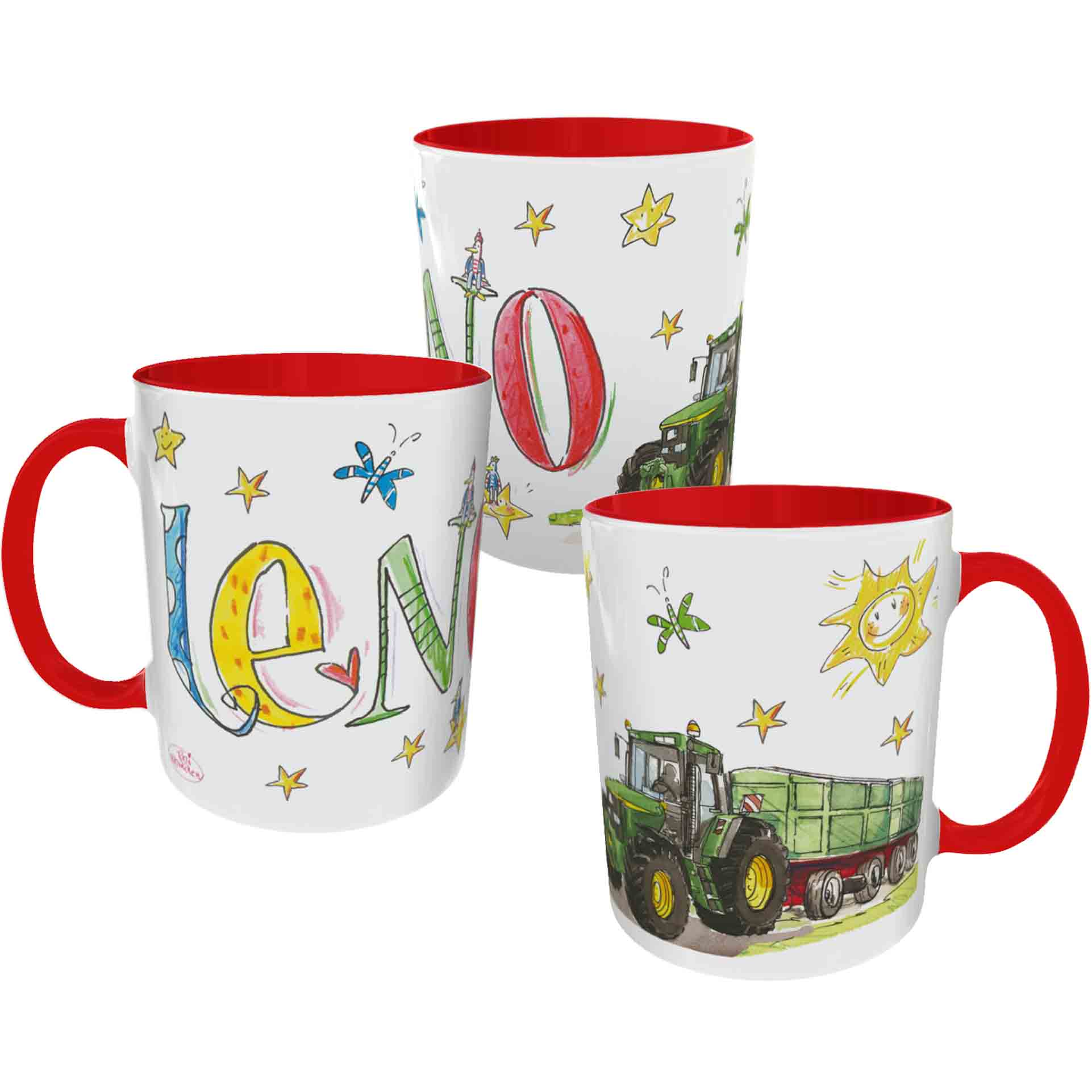 Die Personalisierungen auf den Produkten stellen nur Beispiele und mögliche Personalisierungen dar. Die Namen sind müssen immer angegeben werden.