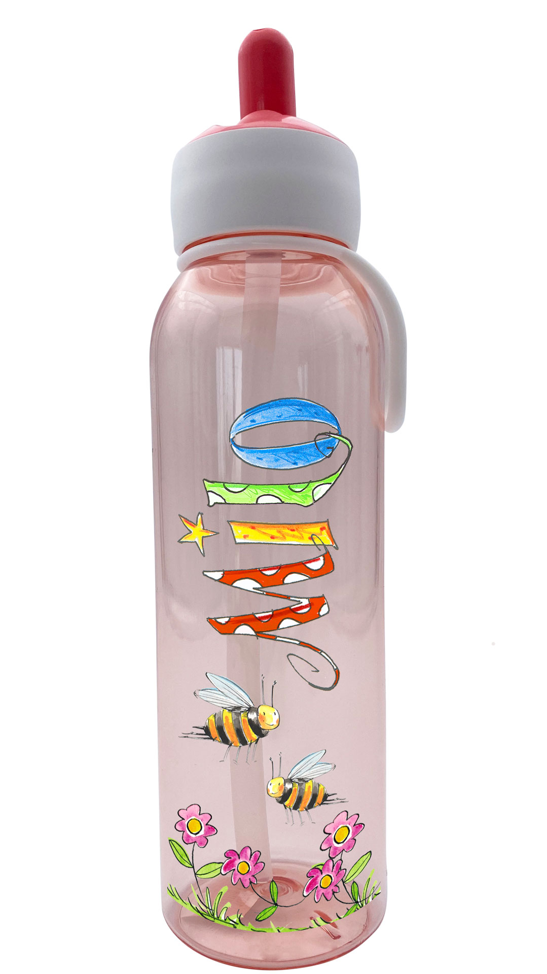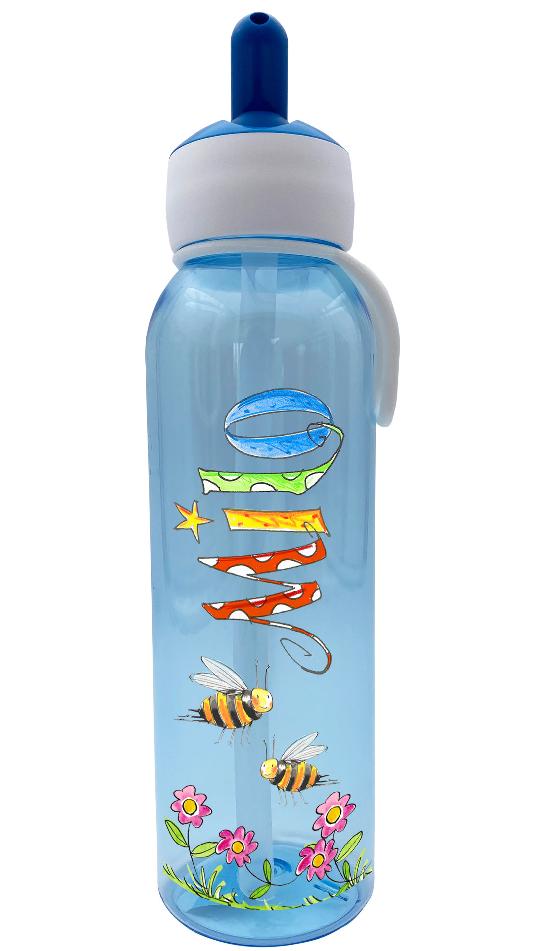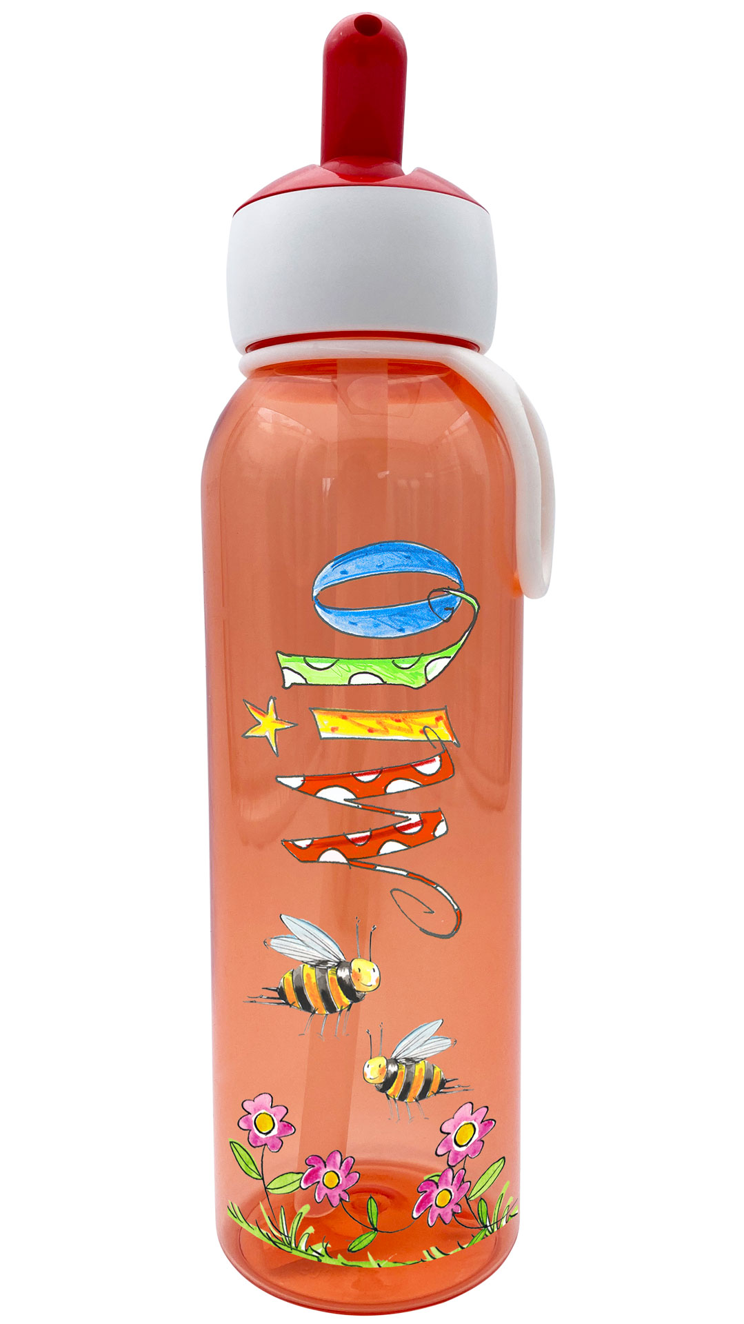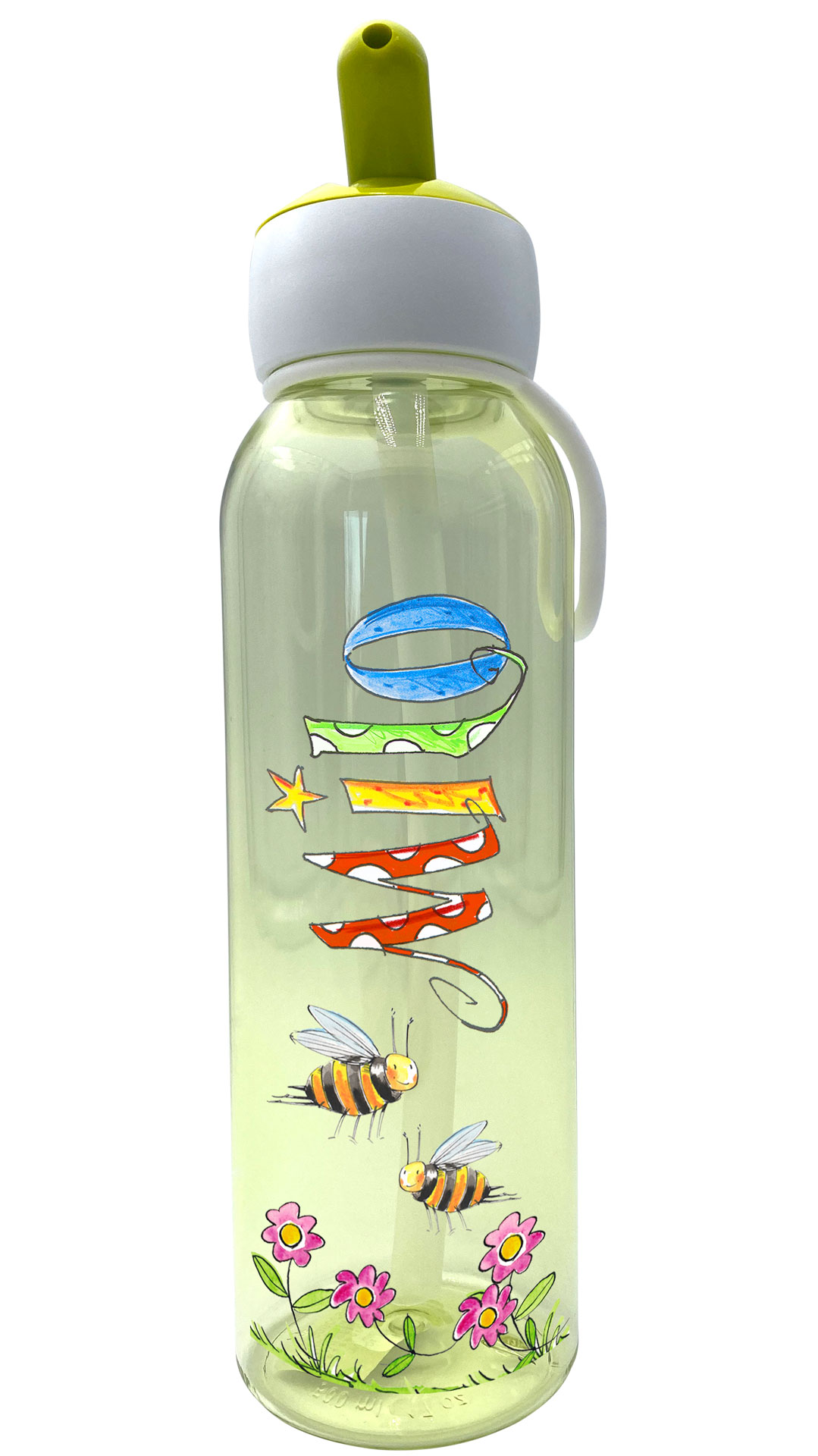 Die personalisierten Kinderflaschen von RosiRosinchen sind das perfekte individualisierte Geschenk zum Kindergarten oder Schulanfang oder zur Schultütenbefüllung. Durch die illustrierten Namen und den lustigen Motiven werden die Trinkflasche zu tollen handgemachten Unikaten. Die auslaufsichere Flipup-Trinkflasche für Kindergarten oder Schule ist auch für kohlensäurehaltige Getränke geeignet. Mit der Brotdose, die man passend dazubestellen kann, hat man ein wunderbar variables Pausenset für die Kinder.